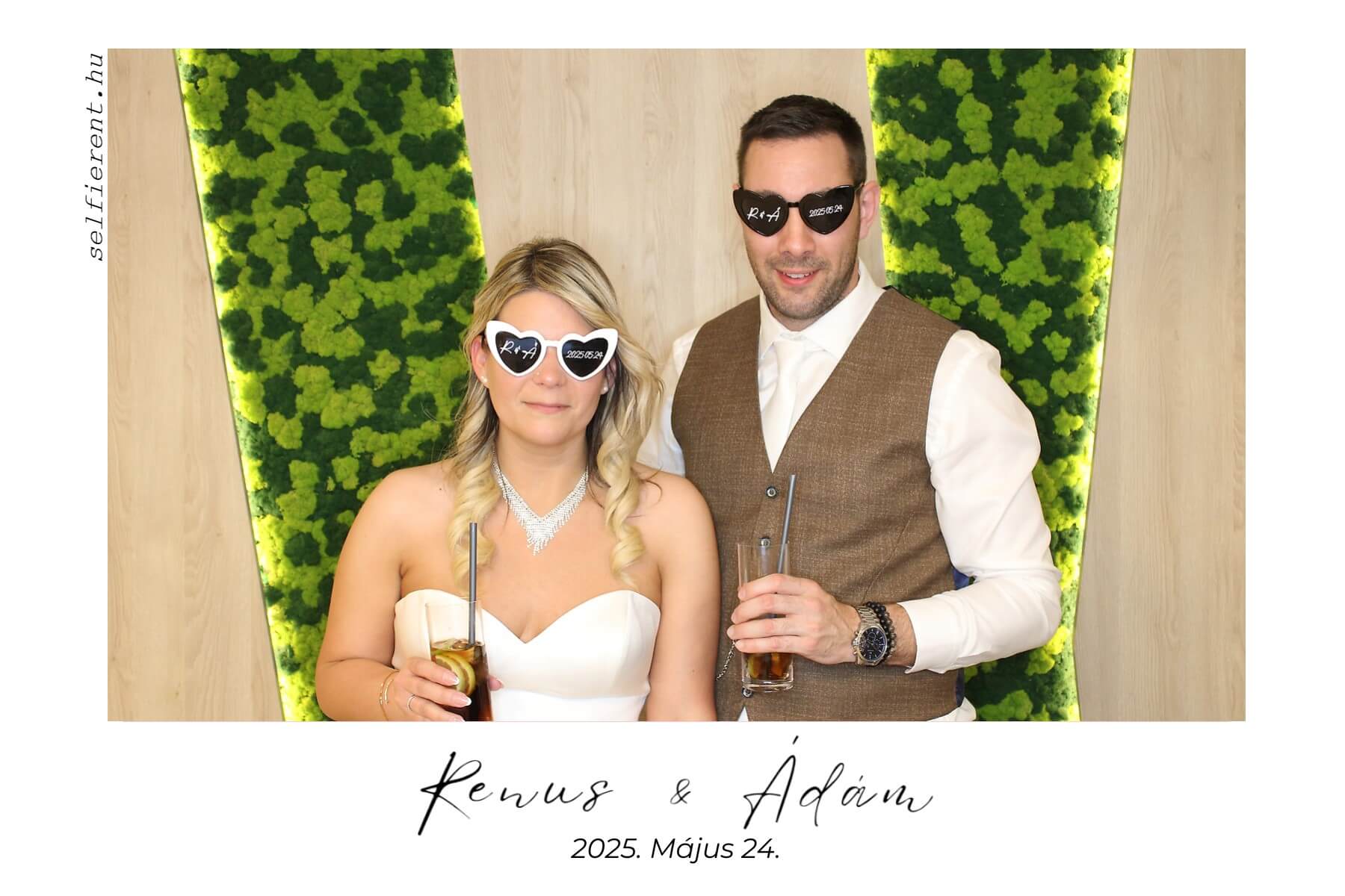 Továbbá egyedi dátummal és monogrammal ellátott, Mr & Mrs partyszemüveget készítünk minden ifjú párnak ajándékba. (Igény esetén más rendezvényre is kérhető.)